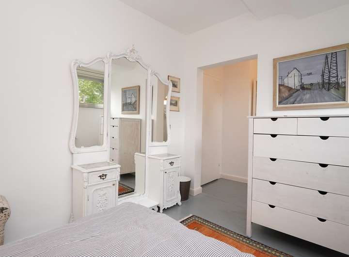 Das zweite Schlafzimmer im ersten Obergeschoss ist in einen Ankleide- und einen Schlafbereich unterteilt.