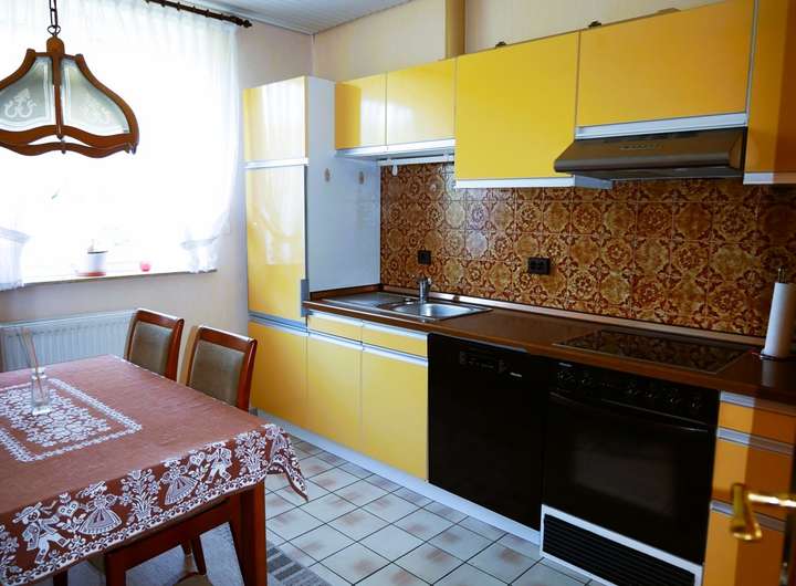 Die Küche kann ohne großen Aufwand zum Wohnzimmer hin geöffnet werden, so dass ein offenes Wohnkonzept möglich ist.