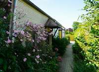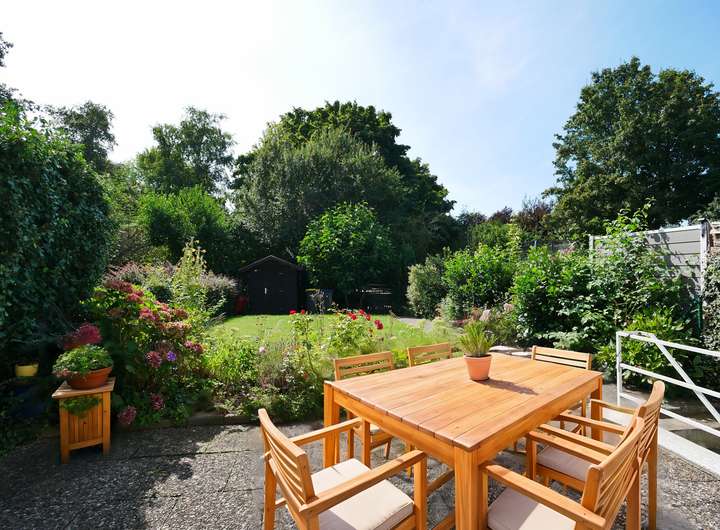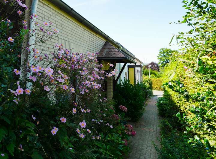 Vom Wohnzimmer aus ist der Zugang zur Terrasse und zum Garten gegeben. Das Reihenhaus kann auch durch den Kellerzugang auf der Rückseite des Hauses betreten werden. Ebenfalls befindet sich auf der Rückseite ein Zugang zum Garten. Im Gartengerätehaus besteht die Möglichkeit, Gartengeräte oder auch ein Fahrrad abzustellen.