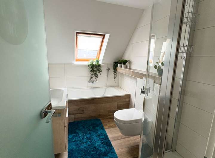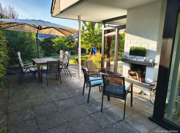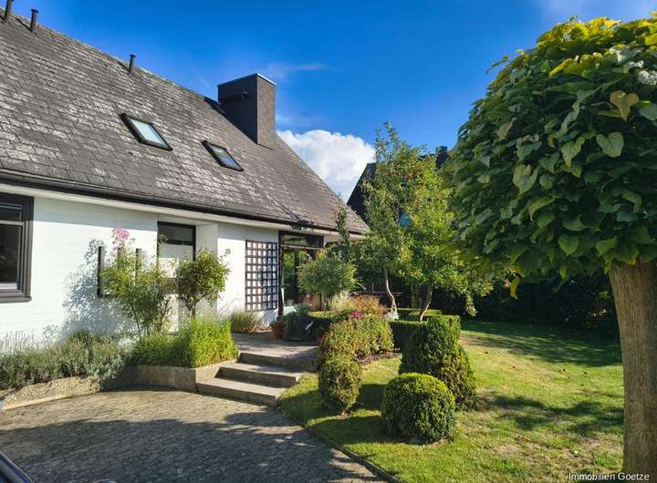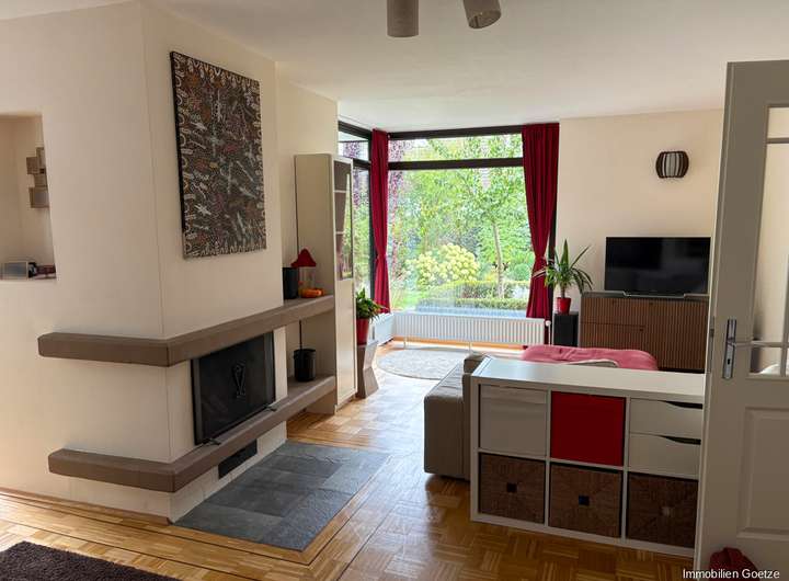 Die Ausstattung des Hauses ist modern und gepflegt. Es verfügt über eine Einbauküche und renovierte Bäder. Die Böden sind je nach Raum in hochwertigem Parkett, Fliesen oder Teppich ausgeführt. Besondere Highlights sind der gemütliche Innenkamin im Wohnzimmer sowie ein Außenkamin auf der Terrasse. Die großzügige Fensterfläche sorgt für eine lichtdurchflutete Atmosphäre. Praktischen Nutzwert bieten der teilweise ausgebaute Keller, eine Einzelgarage sowie weitere Stellplätze.