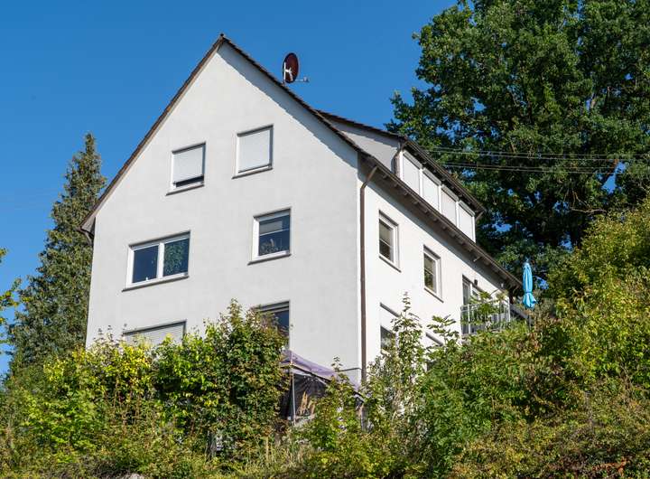 Das gepflegte 4-Familienhaus bietet eine Wohnfläche von ca. 257 m² auf einem sonnigen Hanggrundstück mit rund 666 m² Fläche und beeindruckendem Blick über Esslingen.