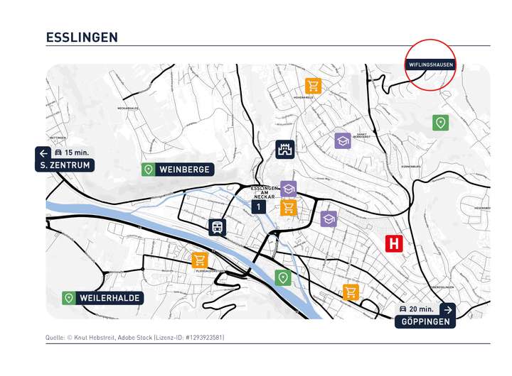 Die Immobilie befindet sich in beliebter Wohnlage von Esslingen-Wiflingshausen, einem ruhigen und grünen Stadtteil mit hervorragender Anbindung zur Innenstadt.