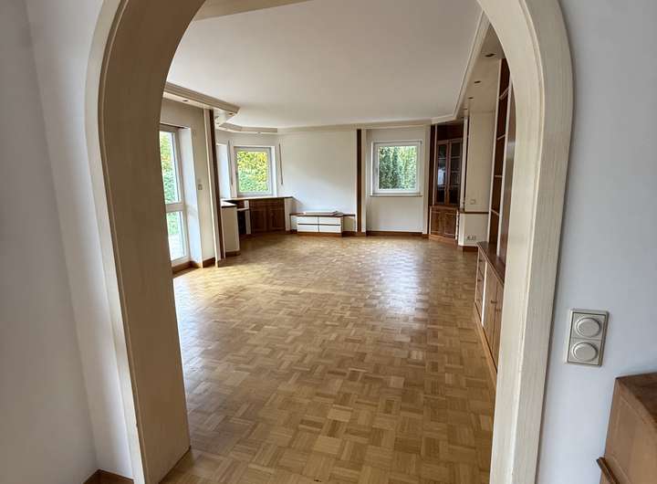 Dieses großzügige Einfamilienhaus in exklusiver Lage mit ca. 220 m² Wohnfläche, 170 m² (ausbaubarer) Nutzfläche, 7 Zimmern, mehr als 1100m² ruhigem Grundstück und einer Doppelgarage plus separatem Stellplatz steht ab sofort zur Vermietung. Das Haus wurde 1986 mit hochwertiger Ausstattung erbaut und bietet großzügigen Wohnraum auf zwei Etagen plus Keller.