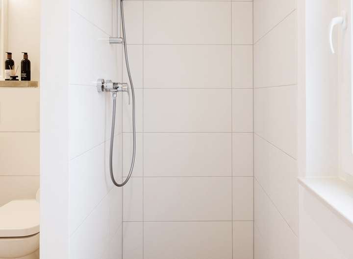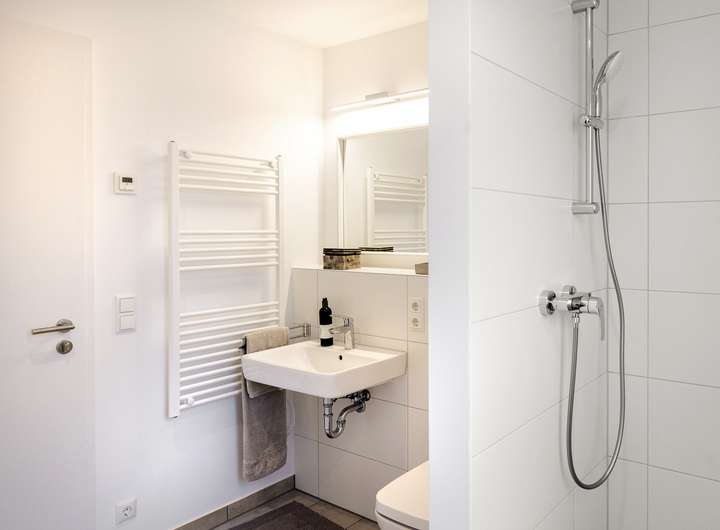 Das Tageslichtbad verfügt über bodengleiche Dusche,
