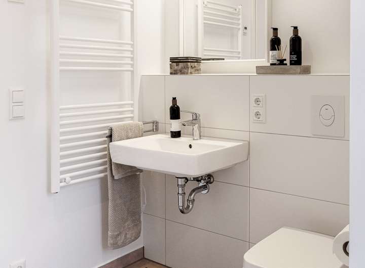 Gäste-WC und Abstellraum ergänzen die Etage. Besonders