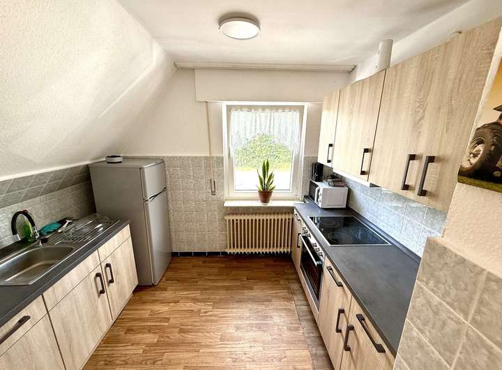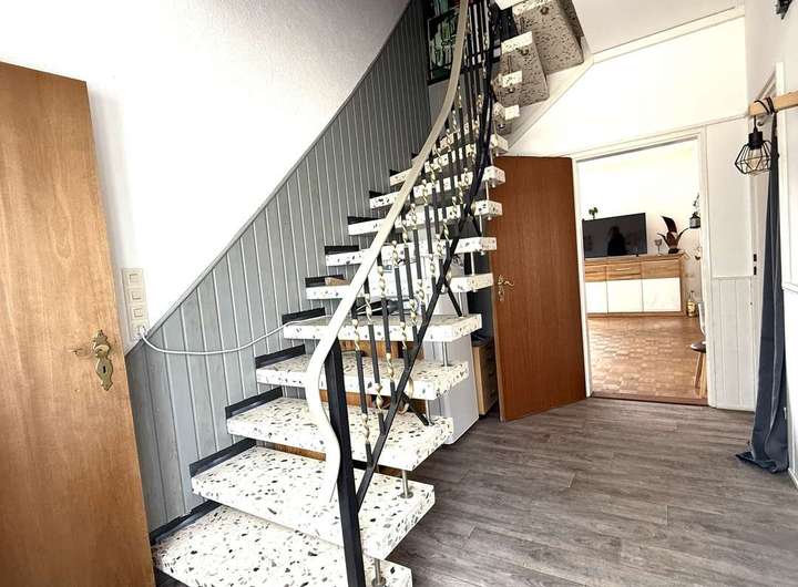 Das Objekt befindet sich in gepflegtem Zustand und wurde zuletzt 2022 teilsaniert. Die Ausstattung ist funktional und ansprechend, sodass kein akuter Renovierungsbedarf besteht. Eine moderne Einbauküche, ein separates Gäste-WC sowie vielfältige Bodenbeläge (Beton, Fliesen, Laminat, Dielen, PVC) bieten einen soliden Standard für die Vermietung.