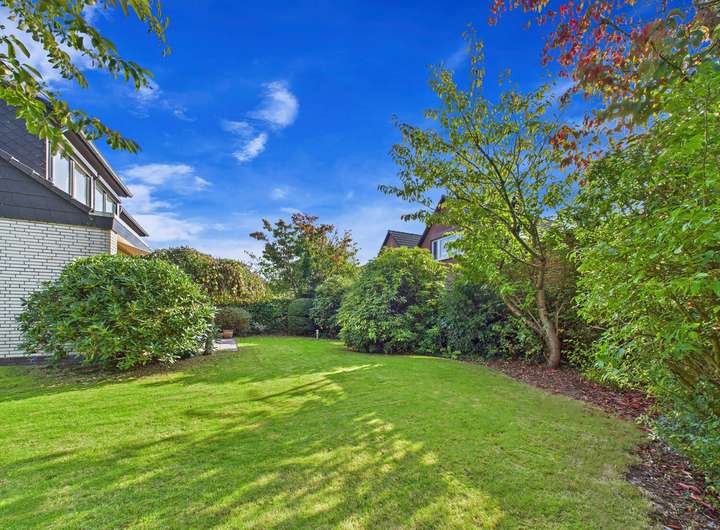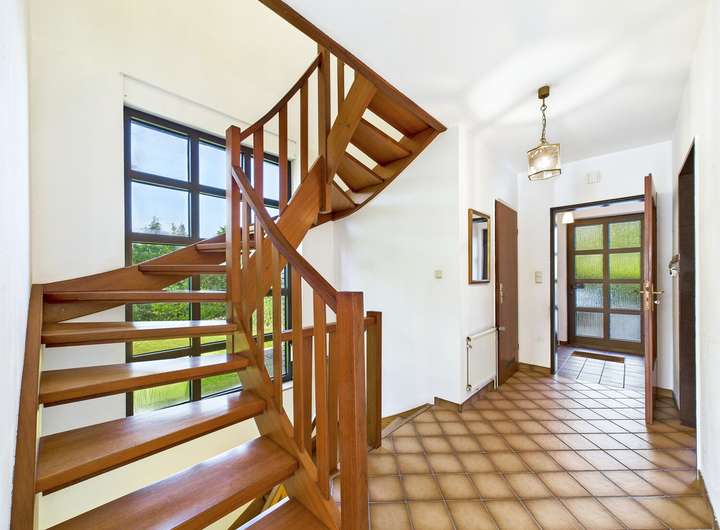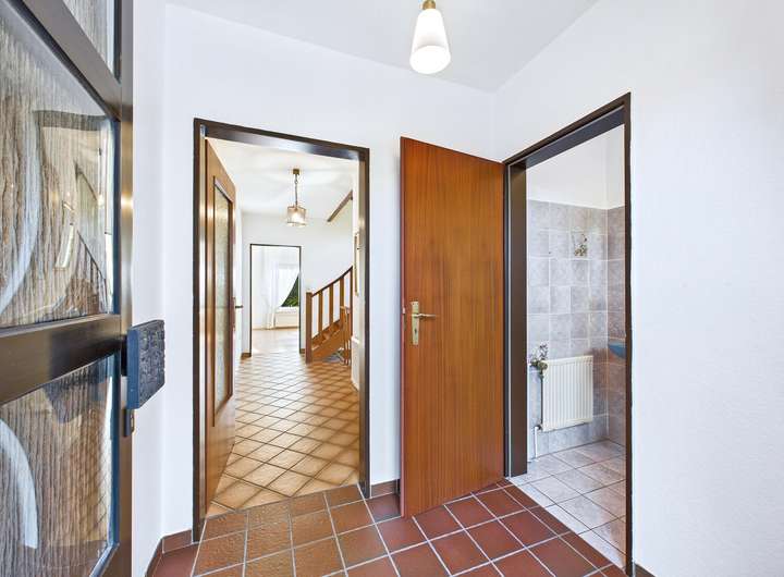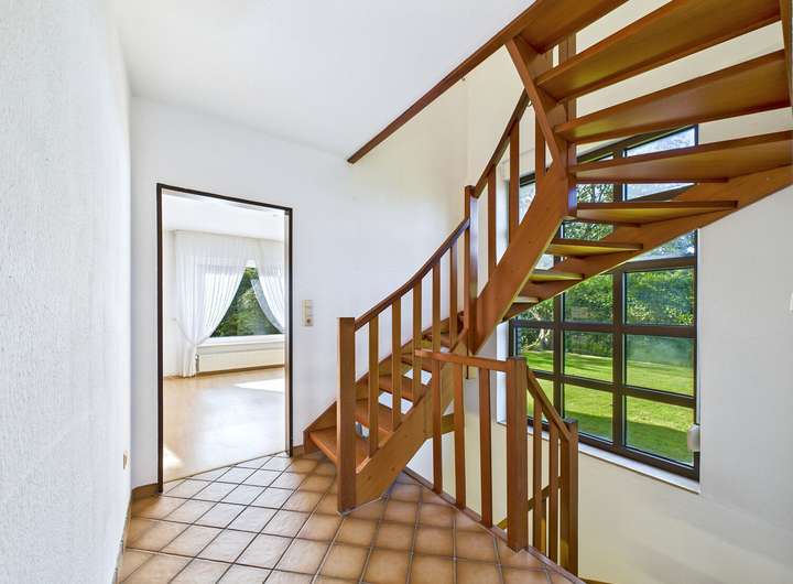 Im Erdgeschoss empfängt ein praktischer Windfang mit angrenzendem Gäste-WC die Bewohner und Gäste. Anschließend öffnet sich der helle Flur zu einer modernen Küche mit Einbauküche sowie zum großzügigen Wohn- und Essbereich. Von hier aus gelangt man direkt auf die sonnige Terrasse und in den liebevoll angelegten Garten – ideal zum Entspannen oder für gesellige Stunden im Freien.