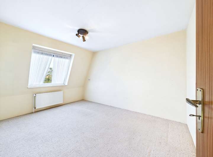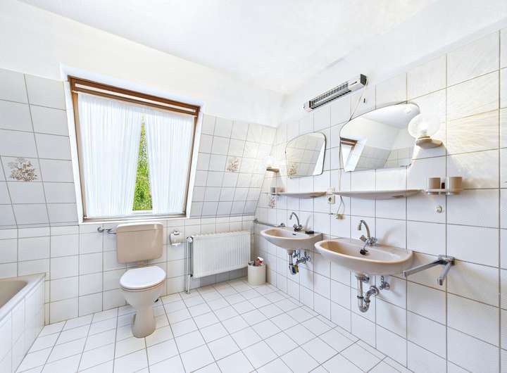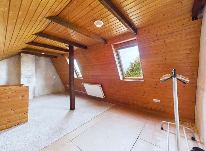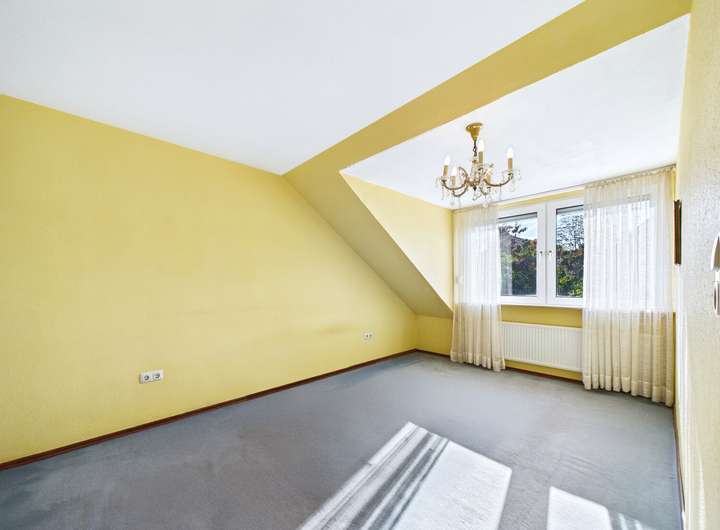 Das Obergeschoss beherbergt drei gut geschnittene Zimmer – ein Elternschlafzimmer, ein Kinderzimmer sowie ein weiteres Zimmer, das sich flexibel als zweites Kinderzimmer oder Büro nutzen lässt. Das große Tageslichtbad ist mit Dusche, Badewanne, Doppelwaschbecken und WC ausgestattet.