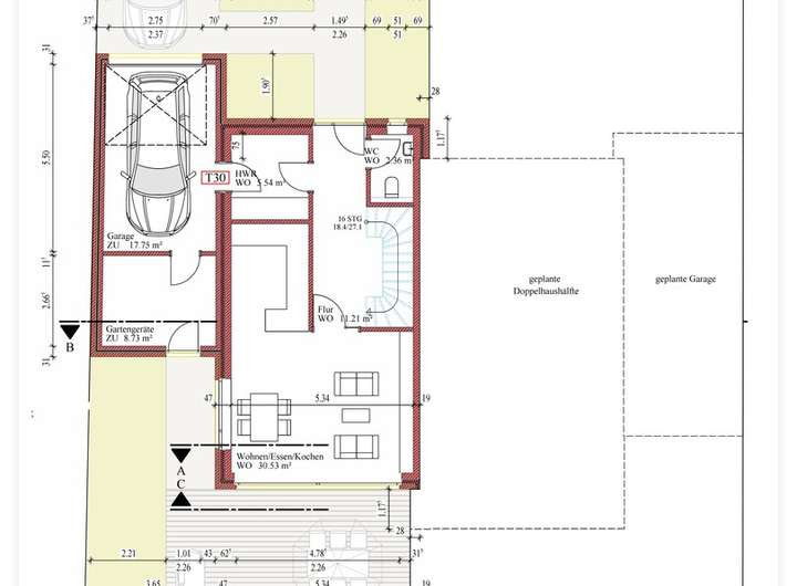 Ein letztes: noch sind beide Seiten / Haushälften frei, sie können sich also noch entscheiden, ob ihnen die Morgensonne oder die Abendsonne wichtiger ist. Bei den Grundrissen, da habe ich die Westseite hier angehängt.