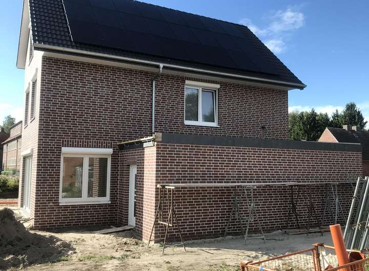 Die technische Ausstattung ist hervorzuheben. Natürlich gibt’s schnelles Internet (Glasfaser) eine PV Anlage mit rund 10 kWh. Ein Akkuspeicher bleibt optional. Der selbst produzierte Strom kann auch eine Elektroauto aufladen. Beheizt wird mit Wärmepumpe wobei die dazugehörige Ausseneinheit oberhalb der Garage aufgestellt werden wird, damit der Garten dadurch nicht beeinträchtigt werden muss.