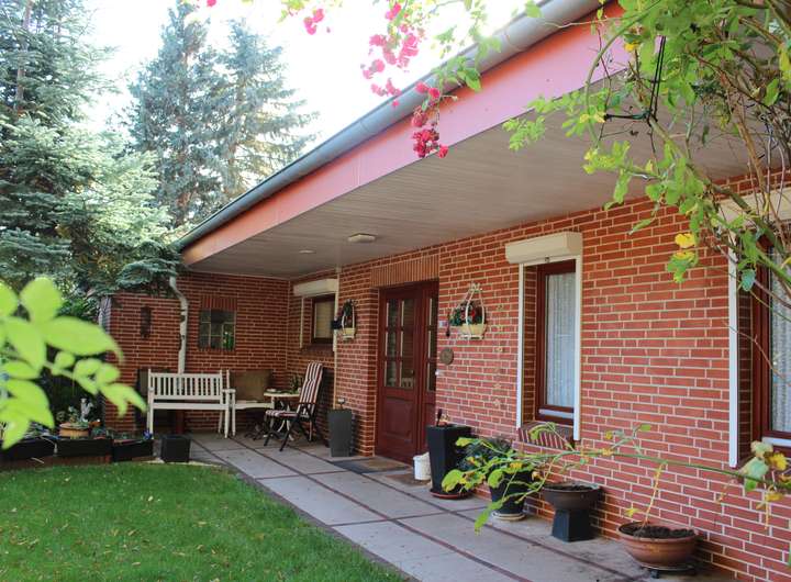 Gepflegtes Einfamilienhaus mit großer Terrasse, Carport und Solarkollektoren auf dem Dach
