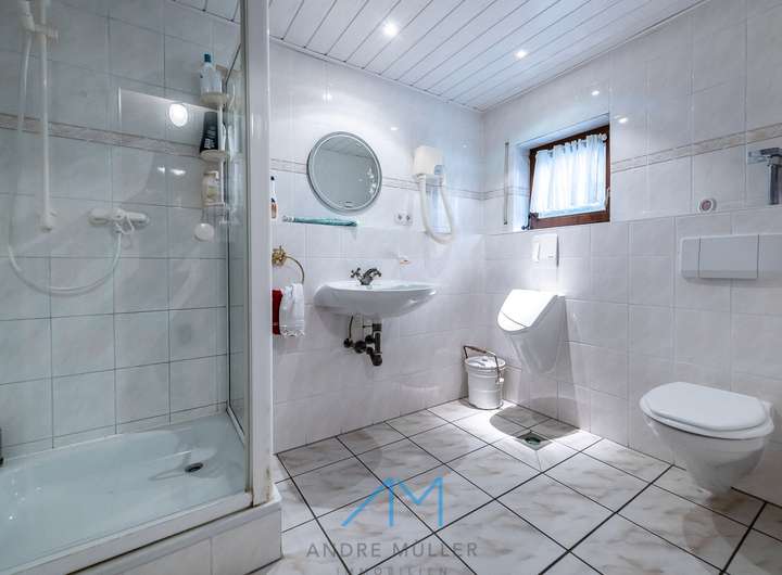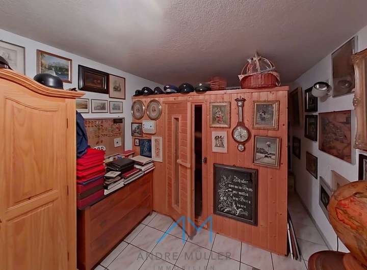 Ein großzügiger Partyraum mit Bar, Sauna sowie Dusch/WC schaffen beste Voraussetzungen für gesellige Stunden oder entspannte Wellnessmomente. Der Bereich ist beheizt und vielseitig nutzbar – auf Wunsch auch als Einliegerwohnung.