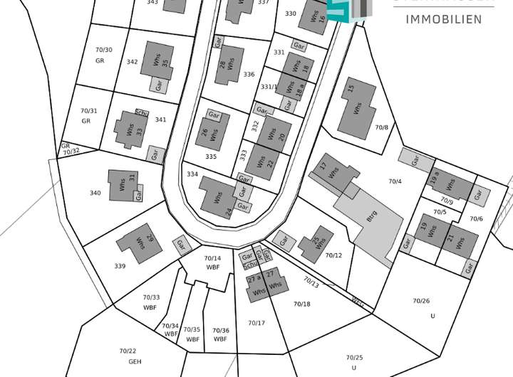 Diese zusammen können mit einem Ein-/ Zweifamilienwohnhaus / Doppelhaus oder Mehrfamilienhaus bebaut werden. Über das zentrale Grundstück mit der Flurstücks Nummer 70/14 sind die dahinterliegenden Grundstücke an den öffentlichen Raum und die Versorger für Strom, Wasser, Gas, Telekommunikation anschließbar und könnte zusätzlich als Park- und Zugangsmöglichkeit zu den einzelnen Grundstücken dienen.