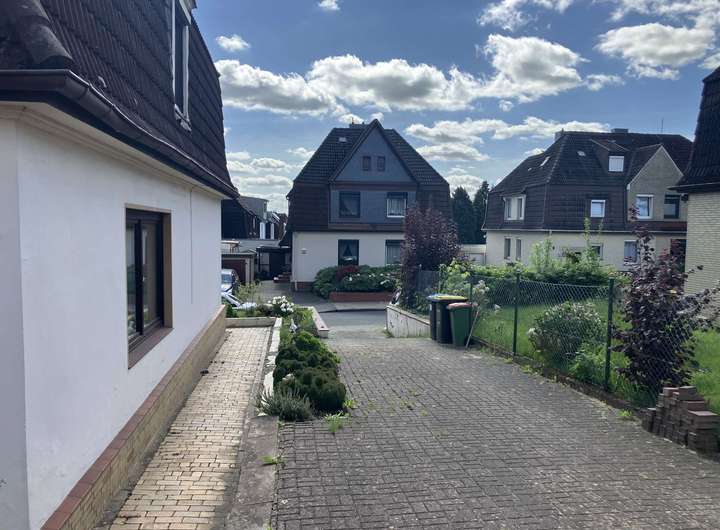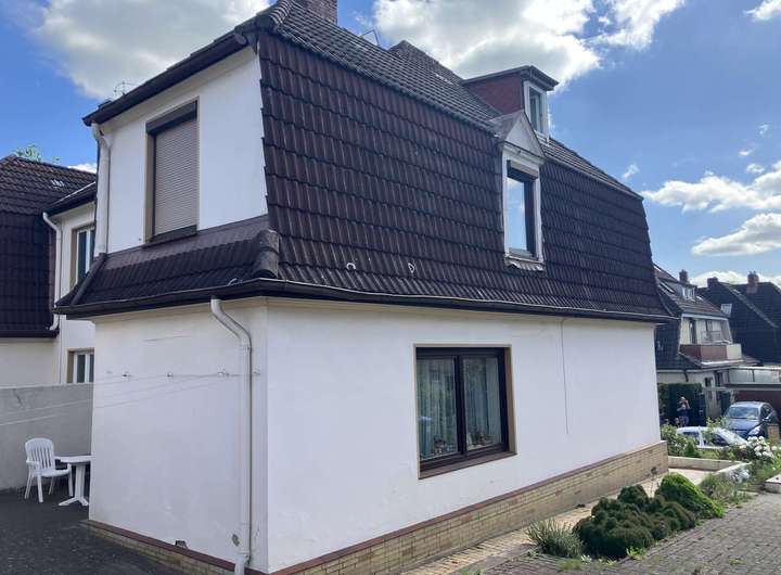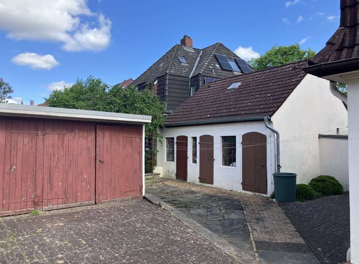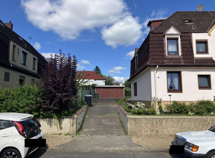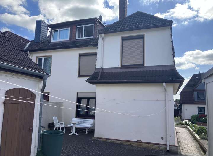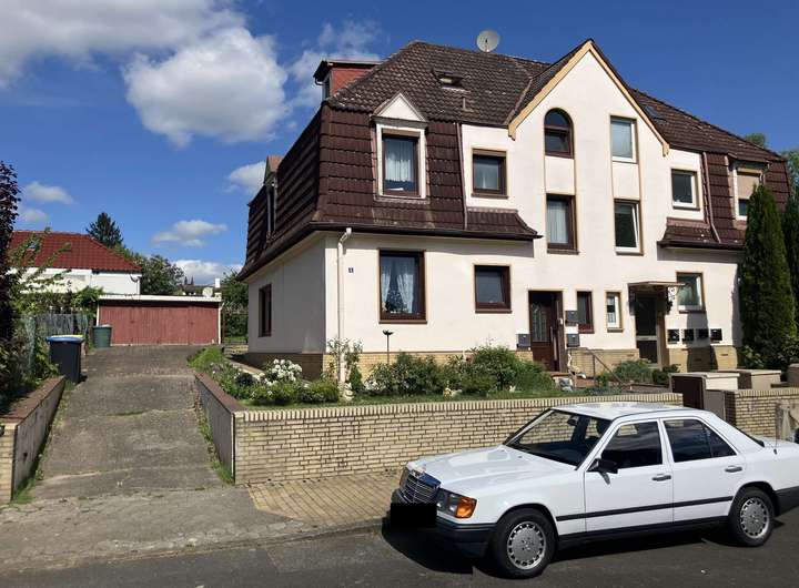 Solides Mehrfamilienhaus (linke DHH) mit Garten, Garagen & Entwicklungspotenzial