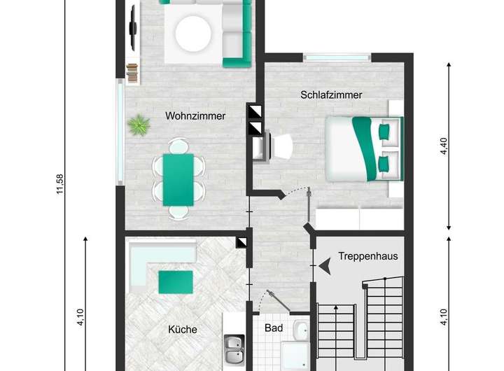 - Möblierte 1-Zimmer-Wohnung mit Küche und Bad
