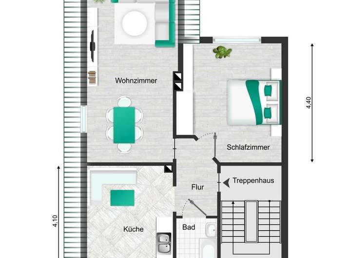 - 2 Zimmer, Küche, Tageslichtbad (Vollbad)