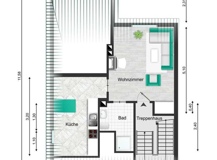 Wohnlich ausgebautes Dachgeschoss (ca. 25 m² Homeoffice oder Gästezimmer):