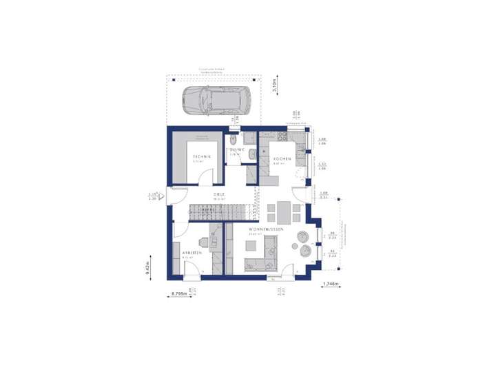 Im angegebenen Preis für dieses projektierte Haus ist das Grundstück, welches Sie direkt von Dritten erwerben, bereits enthalten. Das Angebot ist unverbindlich und freibleibend, exklusive der Baunebenkosten wie z.B. Hausanschlüsse, Außenanlagen, Notar- und Gerichtskosten.