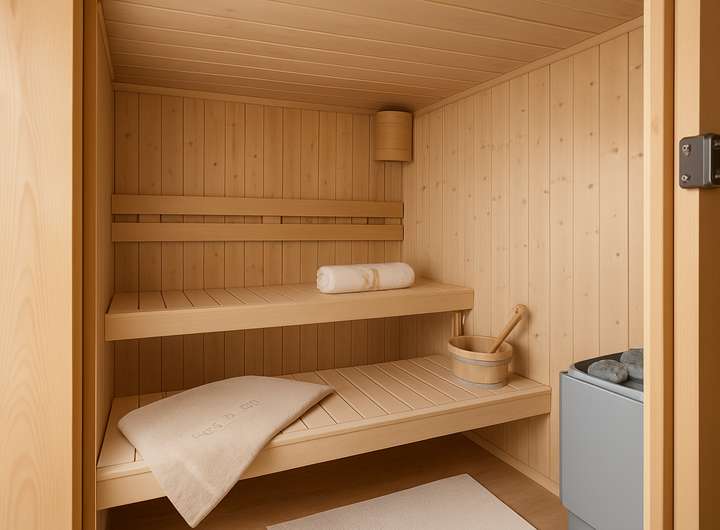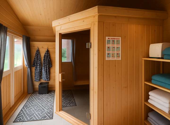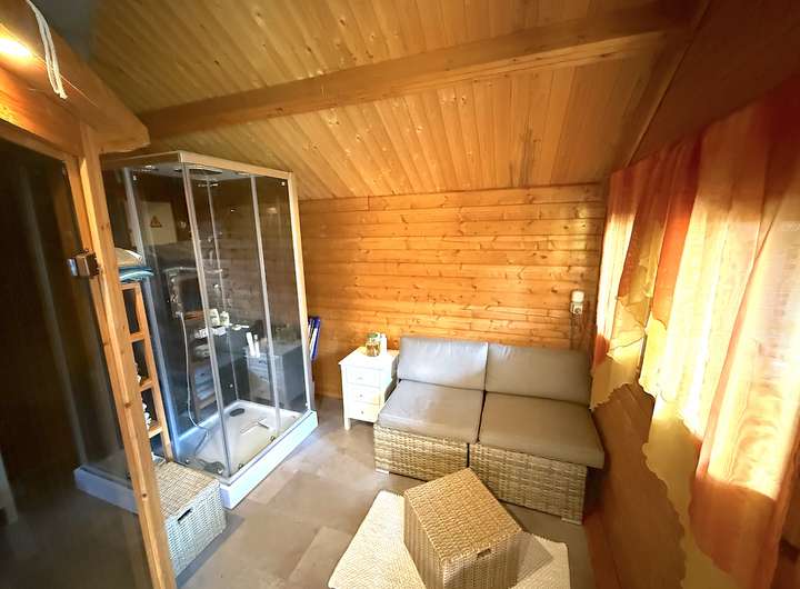 - Wellnessbereich im Garten mit Sauna und Dusche