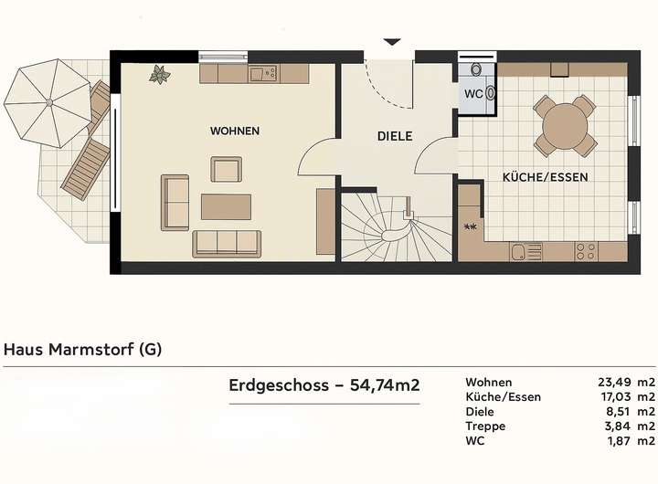 - Ca. 400 m² Grundstück mit gepflegtem privaten Garten