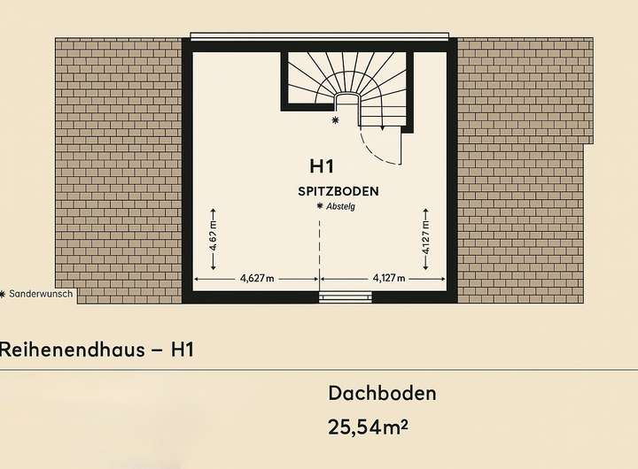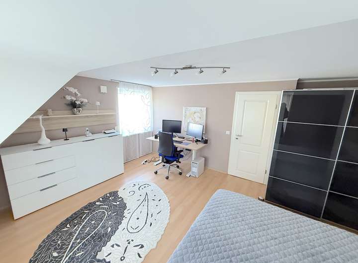 Das ausgebaute Dachgeschoss bietet zusätzlichen Raum für Arbeiten, Hobbys oder als privater Rückzugsort.