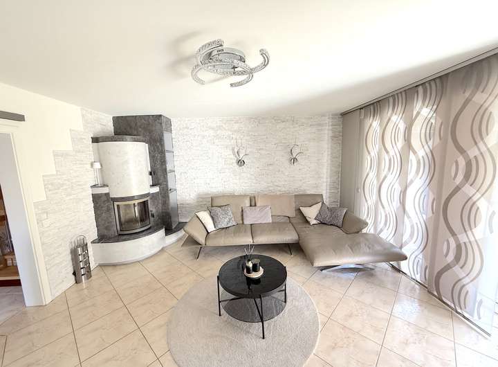 - Lichtdurchflutetes Wohnzimmer mit Kaminofen