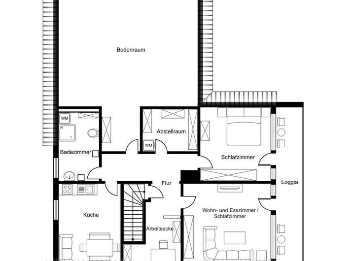 - großzügiger Bodenraum (Ausbaureserve oder Stauraum)