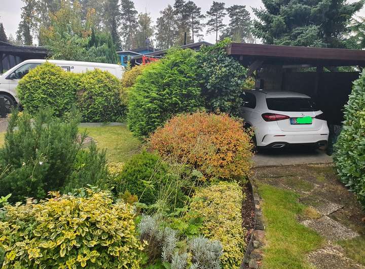 Ein Nebengebäude für Gartengeräte und Werkzeuge sowie ein Carport, alles ist vorhanden.