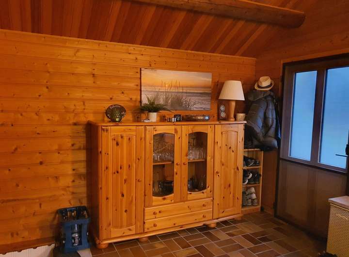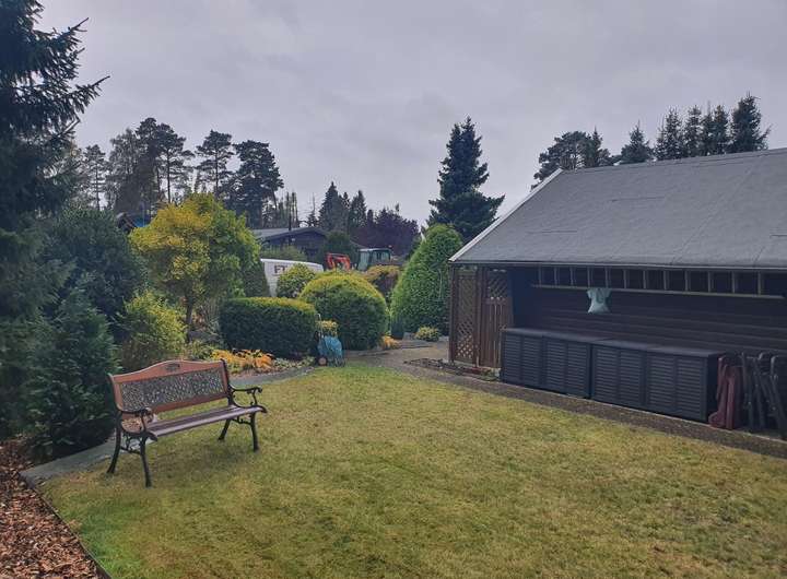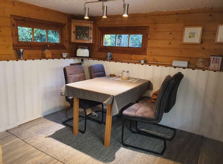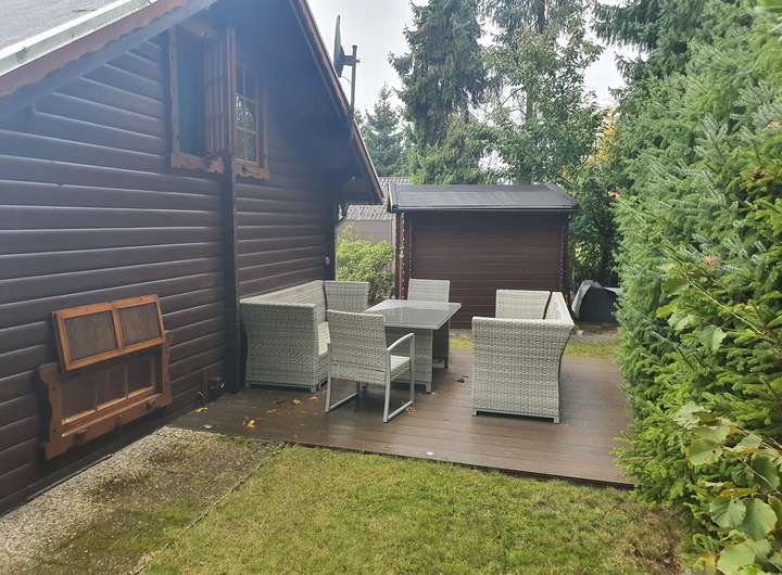 Zum Verkauf steht ein sehr gepflegtes und gedämmtes Holzhaus mit ca. 60 qm Wohnfläche, auf einem großzügigen, umzäunten Eigentumsgrundstück mit einer Größe von 607 qm.