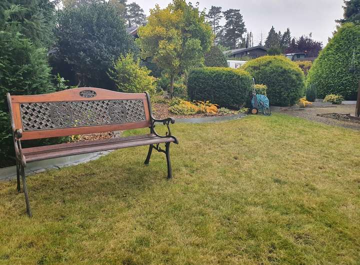 Das Grundstück ist nach Süden ausgerichtet und uneinsehbar - die Ihnen größtmögliche Privatsphäre garantiert und hier befindet sich auch die 2.Terrasse mit Möbeln und einer Markise direkt am Haus. Es ist einfach herrlich hier zu wohnen!