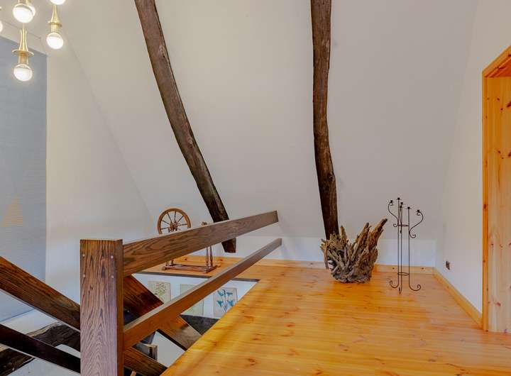 • Massive offene Holztreppe ins Obergeschoss, Holzgeländer