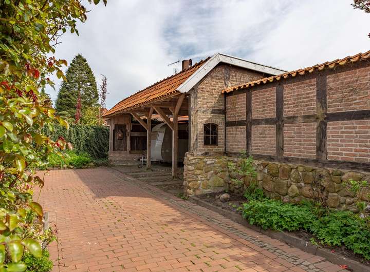 Naturnahes Fachwerkhaus auf liebevollem Grundstück mit Spieker, Carport u. Pergola