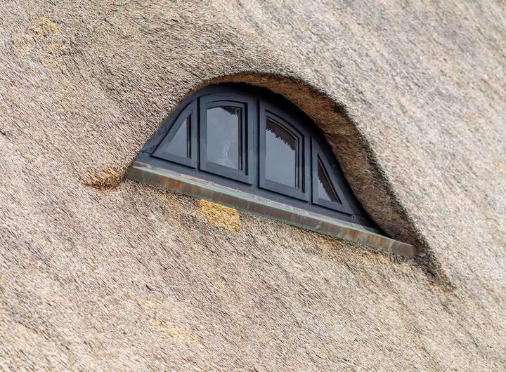 • Reetdach mit Dachgaube, Kupferfirst und Blitzschutzanlage