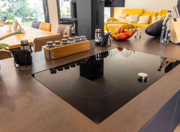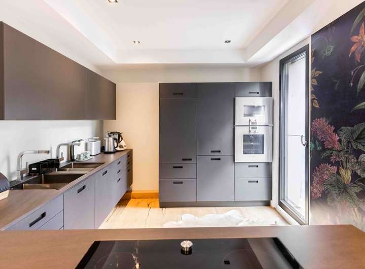 ° Offener Kamin I Hochwertige Einbauküche mit Marken-Elektrogeräte ( Gaggenau ) I LED Beleuchtungskonzept I Großflächige Alufenster I Elektrische Raffstores im gesamten Haus, im Erd- und Obergeschoss individuell steuerbar