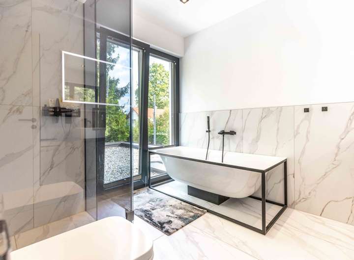 Diese exklusive Villa mit sieben Zimmern, erbaut im Jahr 2023 in energieeffizienter Ziegelbauweise, verbindet zeitlose Eleganz mit moderner Architektur. Klare Linien, edle Materialien und eine großzügige Raumgestaltung schaffen ein Wohnambiente von außergewöhnlicher Qualität und Stil.