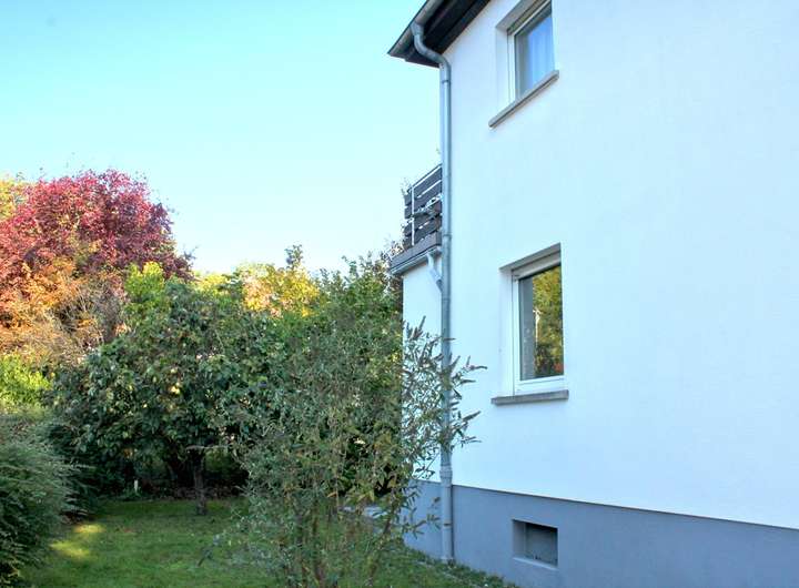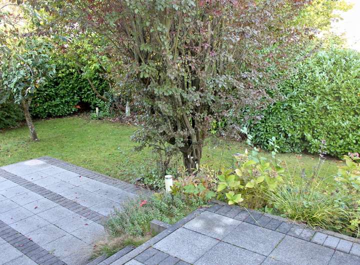 Von der Küche aus erreicht man die Terrasse und den anschließenden Garten. Komplett eingewachsen ist dieser für Gartenfreunde eine Oase der Ruhe.