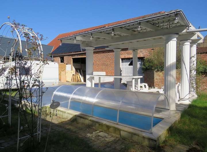 Pool: 6x2 Meter und 1x4 Meter, L Form, 1,4 Meter tief, mit Sandfilteranlage und Solarheizung