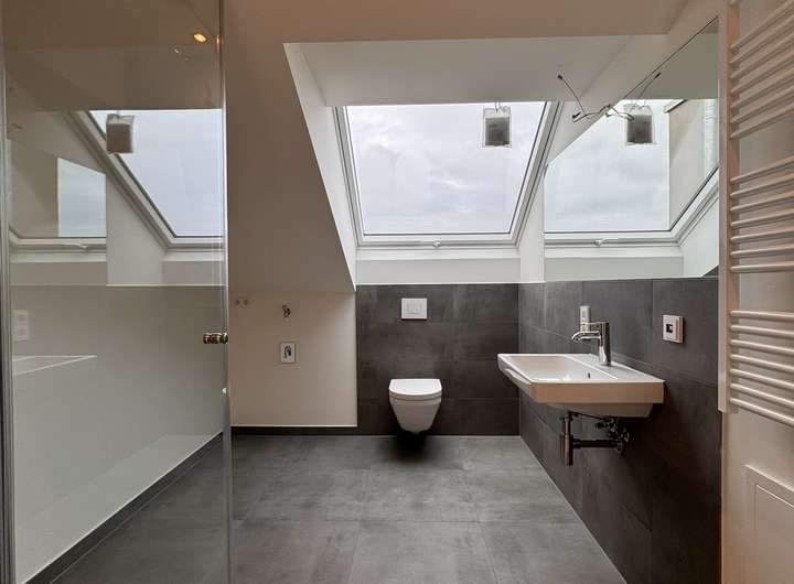 2 Zimmer | im DG I Erstbezug I A+ Neubau I Bad mit ebenerdiger großer Dusche I Badezimmer mit Deckenspots - modern und zeitlos gefliest I Bluetooth-Radio mit Lautsprechern im Badezimmer bereits intrigiert I WM im Badezimmer I optimale Grundrissgestaltung I offene Wohnküche I lichtdurchflutete Räume I Glatt gespachtelte weiße Wände | großzügiger BALKON | Echtholz-Parkett I begrünter Innenhof I Hausmeisterdienst | Diese Einheit wird vom Eigentümer mit einer EBK ausgestattet - für diese wird eine separate monatliche Nutzungspauschaue von ca. 70-110 EUR (je nach EBK) zuzüglich verlangt | Stellplatz 60 EUR monatlich (muss gemietet werden)