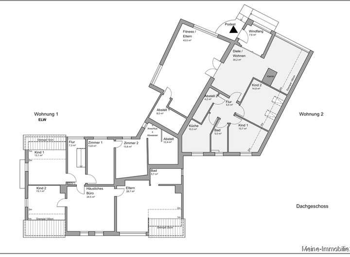 Grundriss Dachgeschoss ELW + W
