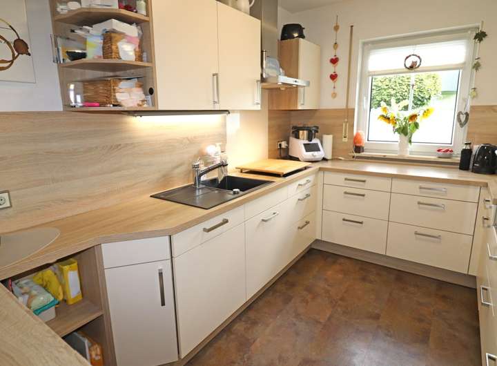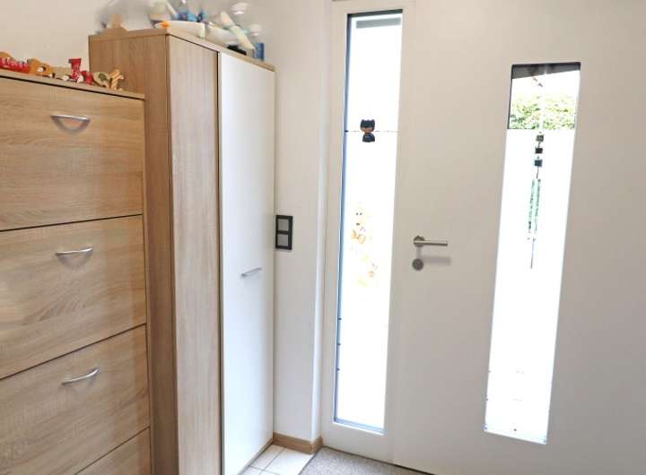 Der Eingangsbereich ist überdacht, die ALU-Haustüre wurde 2018, der Warmwasserspeicher 2021 erneuert. Die vorhandene Einbauküche aus dem Jahr 2015 ist im Kaufpreis enthalten.