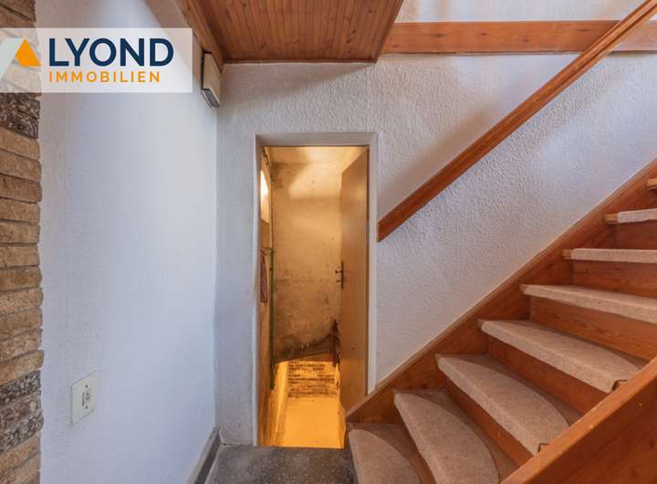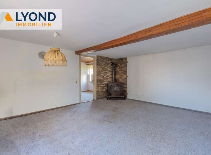 - Zweigeschossiges Einfamilienhaus - Wohnfläche: ca. 85 m² - Grundstücksgröße: ca. 480 m² - Renovierungsbedarf in Elektrik, Sanitär, Fenster, Heizung - Öl-Einzelöfen mit zentralem Tank - Großzügiger Raum im Erdgeschoss für Wohn-/Essbereich - Obergeschoss 4 Zimmer - Küche für Renovierung vorgesehen - Umgestaltung des Waschhauses zum Badezimmer - Separates WC - Keller - 4 Schuppen - 2 geräumige Garagen
