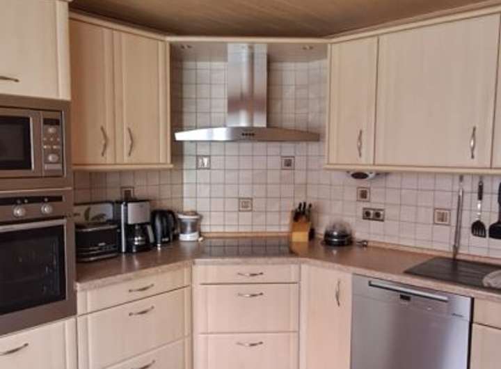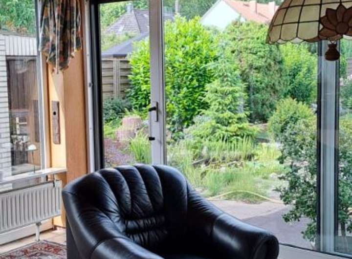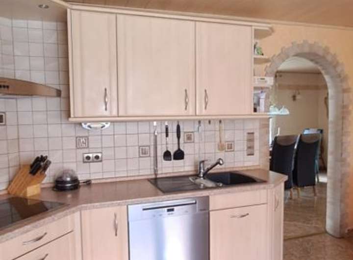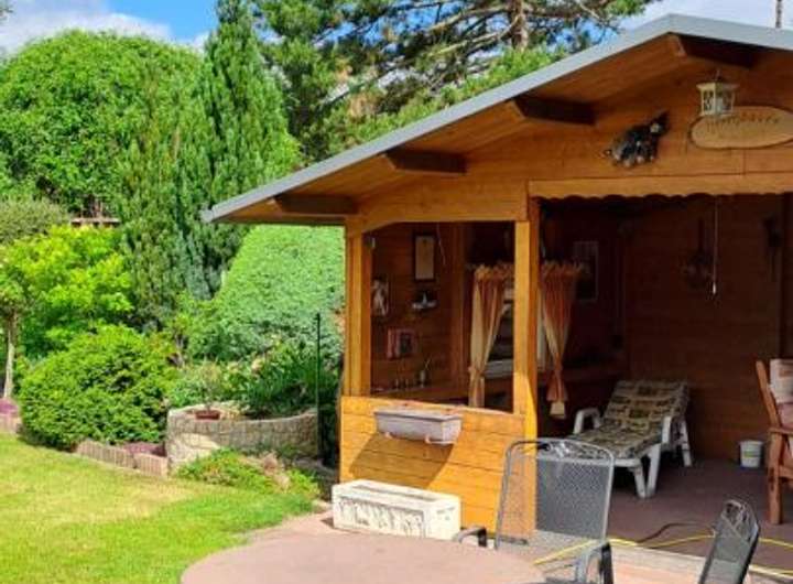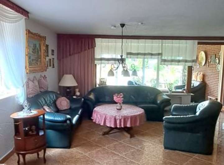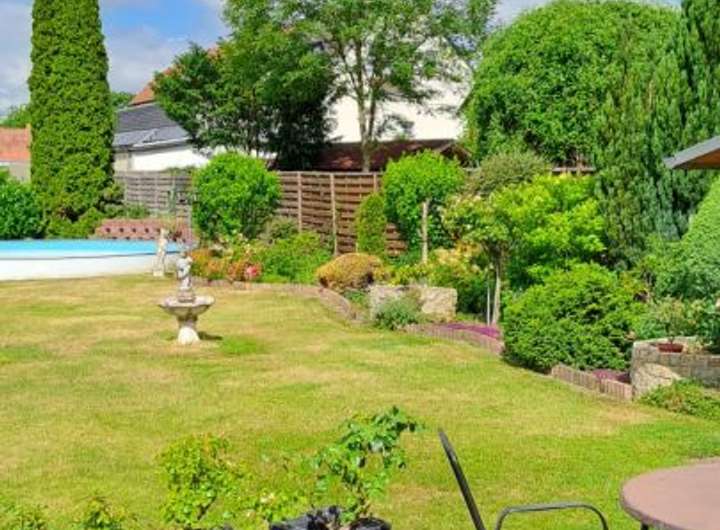 Einbauküche, Terrasse, Wintergarten, 2 Bäder, 3 Schlafzimmer, Wohnzimmer, Esszimmer, Büro, Teilkeller, 2 Garagen, Pool, großer Garten, Mähroboter, Brunnen zum Bewässern, kleine Werkstatt, Gartenlaube, Gewächshaus.