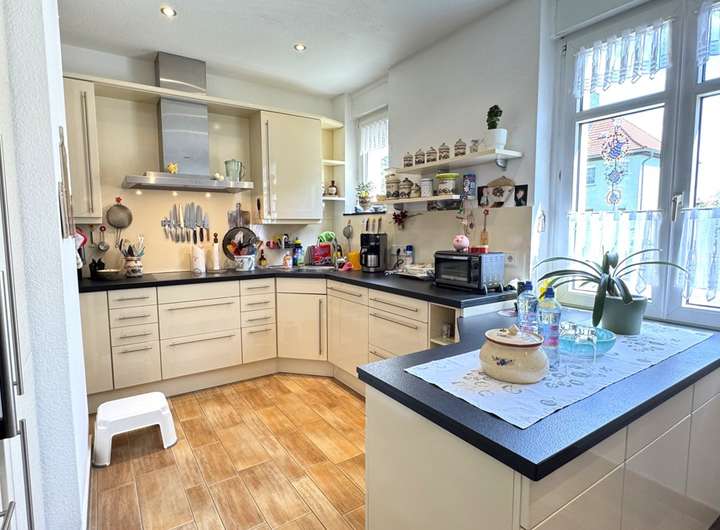 Willkommen in der Thälmannstraße – einem Ort, an dem das Leben Raum bekommt. Diese eindrucksvolle Doppelhaushälfte bietet rund 204 m² Wohnfläche, verteilt auf vier durchdachte Ebenen, und überzeugt mit einer Kombination aus Großzügigkeit, Stilbewusstsein und einer herrlich blühenden Gartenoase. Drei Hauseingänge, ein charmanter Balkon, eine lichtdurchflutete Panoramaecke und ein durchgestalteter Außenbereich machen dieses Haus zu einem echten Unikat – bereit für Menschen, die das Besondere suchen.
