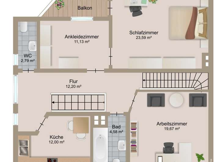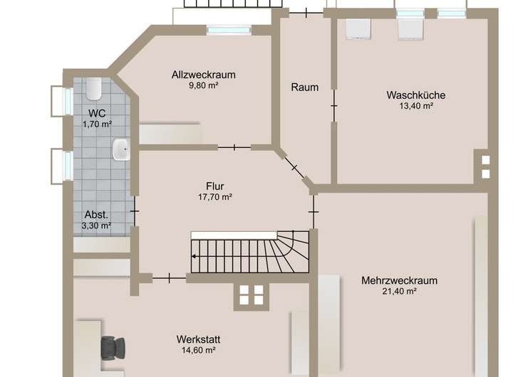 Bei den im Exposé dargestellten Grundrissen handelt es sich ausdrücklich um Grundrissskizzen, die lediglich dem Verständnis der Raumaufteilung dienen sollen. Für angegebene Maße o.a. übernimmt der Makler keine Haftung. Diese sind vom Kaufinteressenten bei Bedarf selbst aufzunehmen.