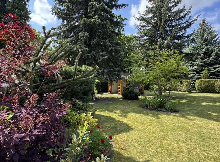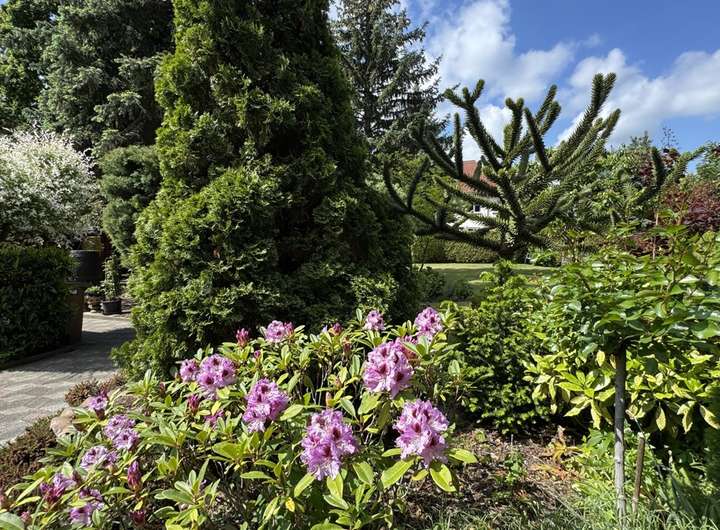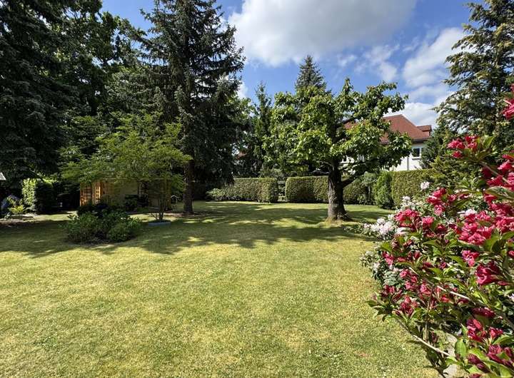 Der Garten ist das absolute Highlight: florale Beete, gepflegte Wege und jede Menge Platz für Erholung, Spiel oder sogar einen Pool.