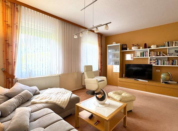 Bereits beim Eintreten durch den Windfang spürt man: Dieses Haus erzählt Geschichten. Im Erdgeschoss erwartet Sie ein harmonisch gegliederter Grundriss, der gleichermaßen zum Ankommen, wie zum Entspannen einlädt. Die Panoramaecke – ein gläserner Rückzugsort mit Blick ins Grüne – ist das architektonische Herzstück. Ob beim Frühstück in der Morgensonne oder beim Abendessen mit Gartenblick, hier pulsiert das Leben. Zwei Wohnzimmerbereiche, ein Gäste-WC sowie eine separate Küche mit Einbauküche runden das Wohnerlebnis auf dieser Etage ab.