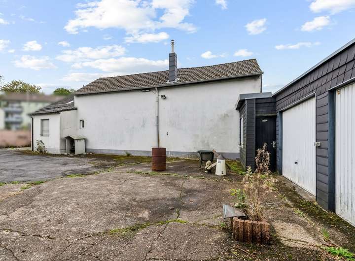 Derzeit befinden sich auf dem Grundstück ein Bestandsgebäude in Form eines Dreifamilienhauses sowie mehrere Garagen.