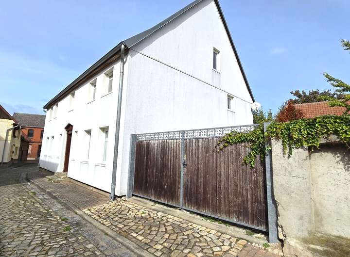 Das Haupthaus verfügt über eine Wohnfläche von etwa 226 Quadratmetern, verteilt auf vier vollständig vermietete Wohnungen. Der allgemeine Zustand des Gebäudes ist gut.