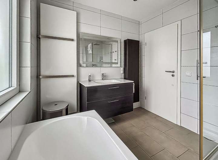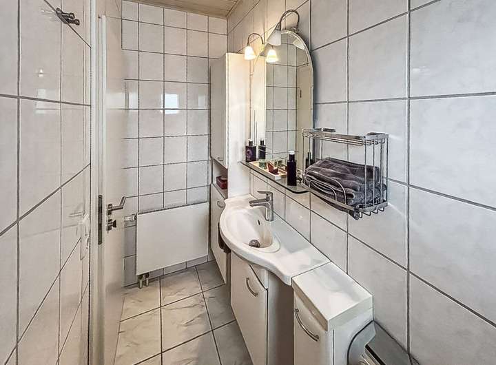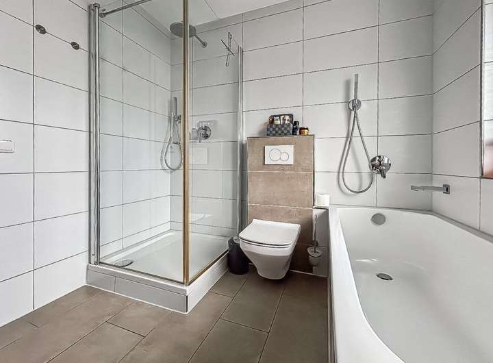 Das Obergeschoss verfügt über drei gut geschnittene Zimmer, die sich flexibel als Schlaf-, Kinder- oder Arbeitszimmer nutzen lassen. Das modernisierte Badezimmer aus dem Jahr 2017 ist mit einer Badewanne und einer Dusche ausgestattet und präsentiert sich in zeitgemäßem Design.