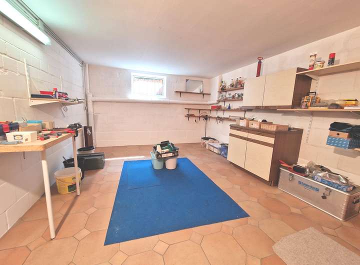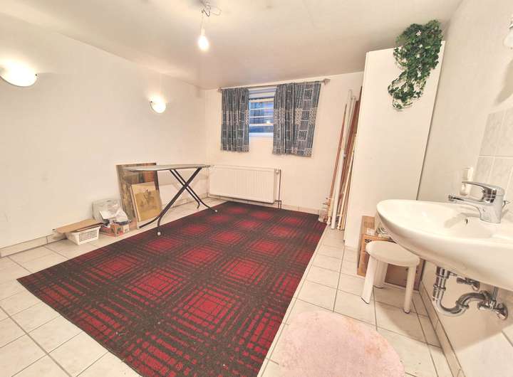 Die Immobilie ist voll unterkellert und bietet auch hier ein umfangreiches Raumangebot. Neben dem Heizungskeller gibt es ein für Gäste zu nutzendes Zimmer mit Waschbecken, einen Hobbyraum, zwei weitere, große Kellerräume und einen Keller zur Holzlagerung für den Kaminofen mit einer Tür in den Außenbereich.